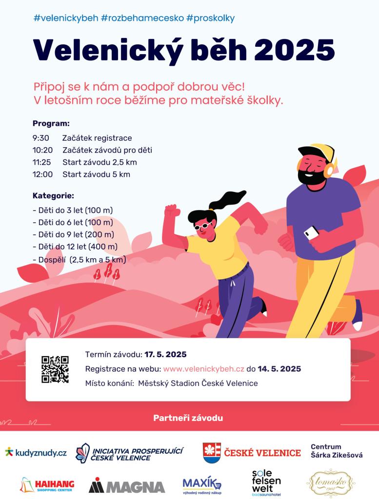 5. ročník Velenického běhu je tady a my už se nemůžeme dočkat, až opět společně vyběhneme! Trasy jednotlivých závodů jsme i v tomto roce nechali stejné s tím, že doběh závodu bude opět na Městském Stadionu.